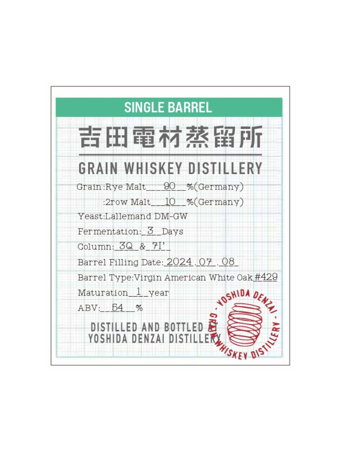 〔2025年12月上旬発送予定〕〔予約商品〕グレーンウイスキー 1年熟成 2nd 吉田電材蒸留所 250ml 55%