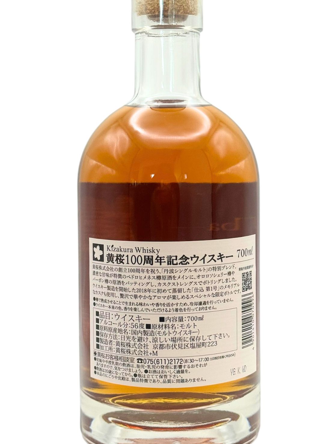 黄桜株式会社の創業100周年を祝う、数量限定で製造した「丹波シングルモルト」の特別ブレンドウイスキーです。濃密な甘味が特徴のペドロヒメネス樽原酒をメインに、オロロソシェリー樽やバーボン樽の原酒をバッティングし、カスクストレングスでボトリングしました。ウイスキー製造を開始した2018年に初めて蒸留した「仕込 第1号」のメモリアルなカスクも使用し、贅沢で華やかなアロマが楽しめるスペシャルな限定ボトルです。