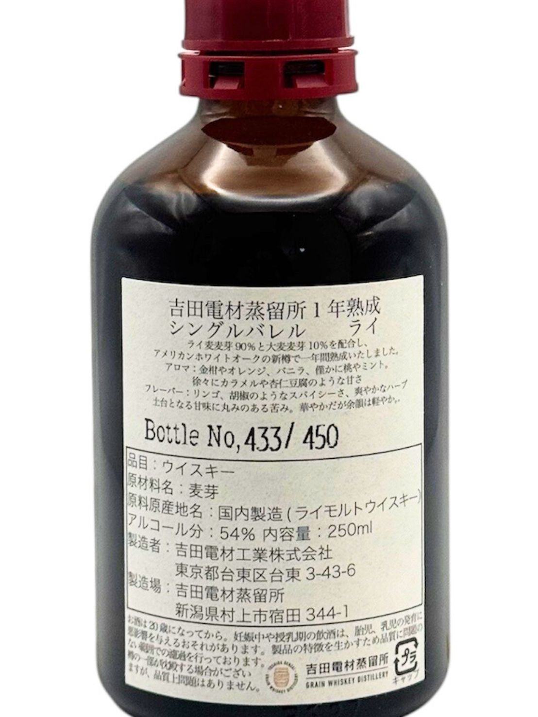 〔2025年12月発売〕シングルバレルライ 1年熟成 吉田電材蒸留所 250ml 54%