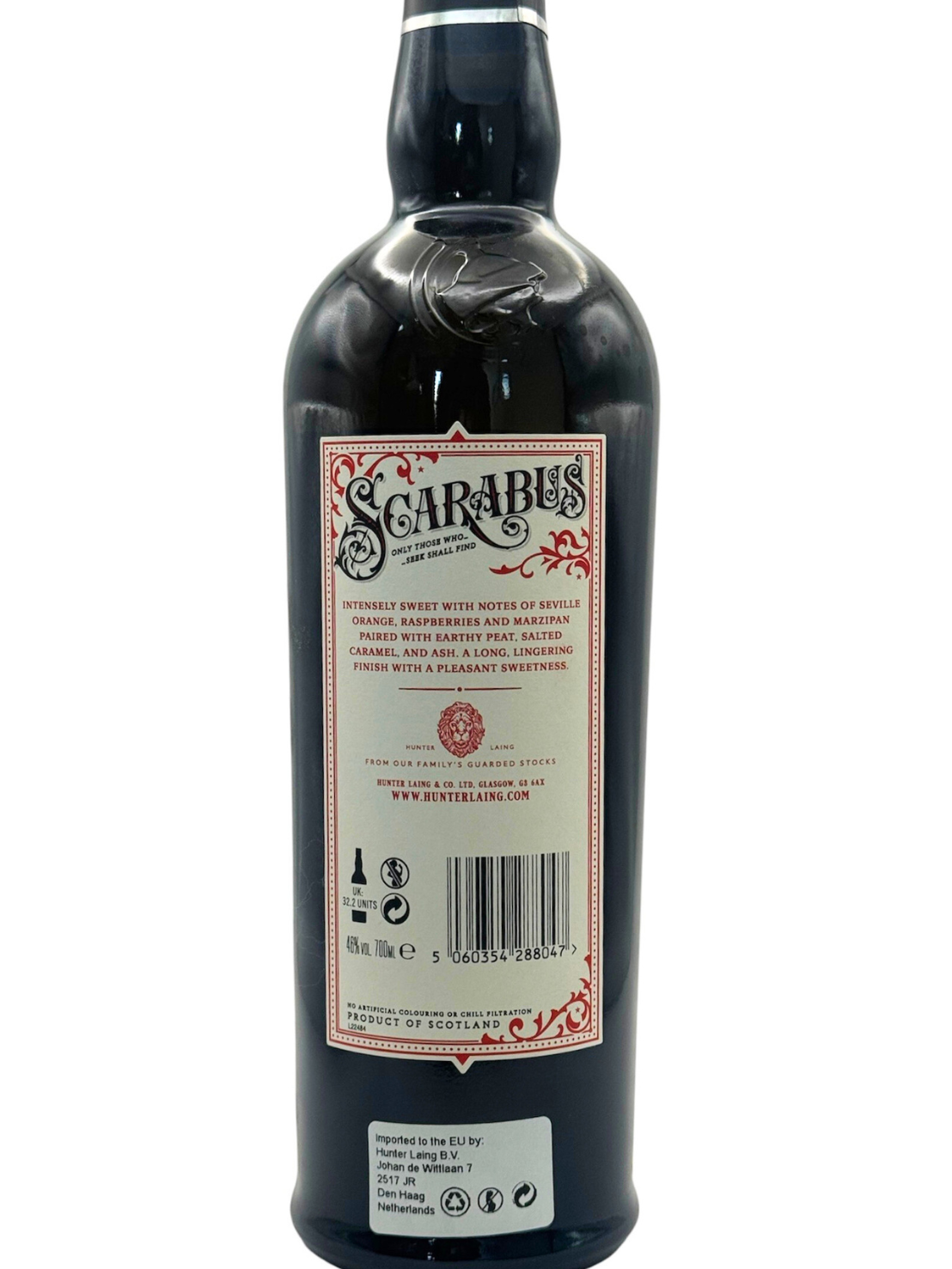 アイラ島9番目の蒸留所「アードナッホー」のオーナー、ハンターレイン社。 先代よりアイラの地と深いゆかりがあり、アイラモルトの目利きとして名高い同社が、2019年に満を持してリリースしたシングルアイラモルト「スカラバス」。古ノルド語で「岩の多い場所」を意味するスカラバスは、アイラの秘境の地名に由来します。ラベルに描かれた「日照計」のイラストは、日照計の発明者でありアイラ島出身のジョン・フランシス・キャンベル氏へのオマージュ。彼の旺盛な好奇心と探究心を見習いたいという願いが込められています。